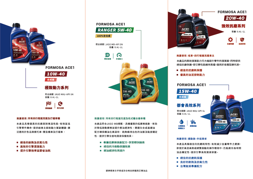 【FORMOSA ACE1】摩托車潤滑油產品手冊更新 最新公告 2026年全新產品手冊上架囉,歡迎車行夥伴向經銷商索取紙本實體,或【點此下載】。 #台塑潤滑油 #產品手冊 #電子DM 2026.2.26/通過: stellawu /wp-content/uploads/2022/11/logo-new-03.png 0 0 stellawu /wp-content/uploads/2022/11/logo-new-03.png stellawu2026-02-26 14:10:442026-02-26 14:11:50【FORMOSA ACE1】摩托車潤滑油產品手冊更新